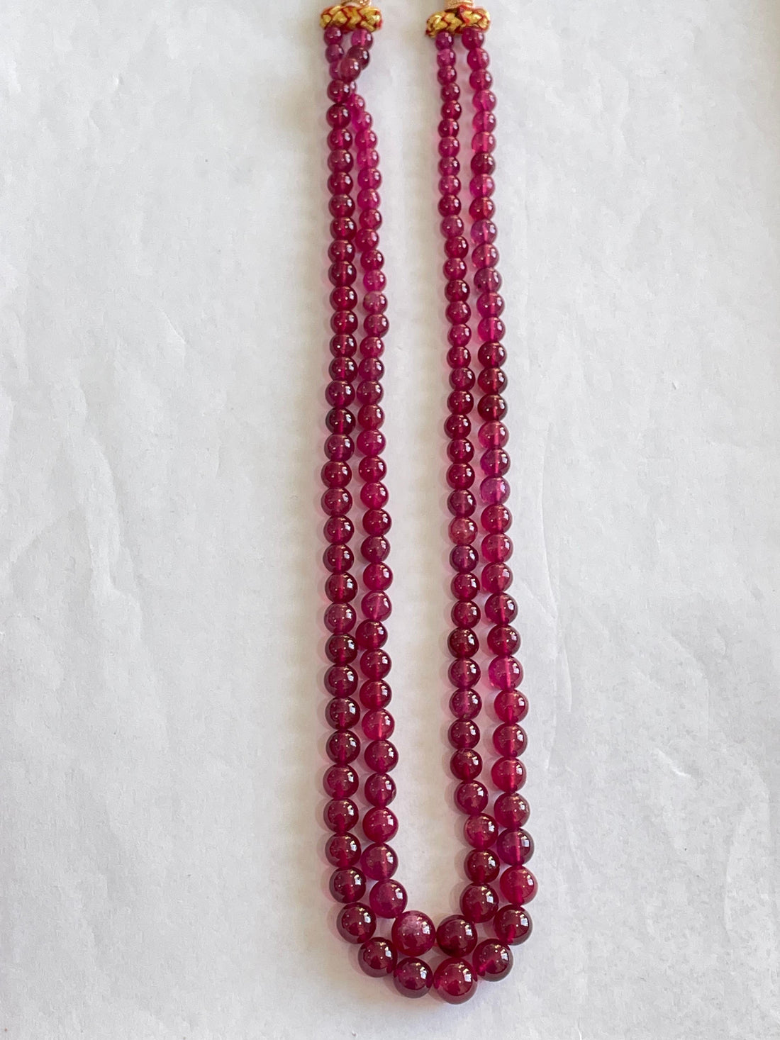 Natural Ruby Smooth Round Beads – 2-Strand Necklace