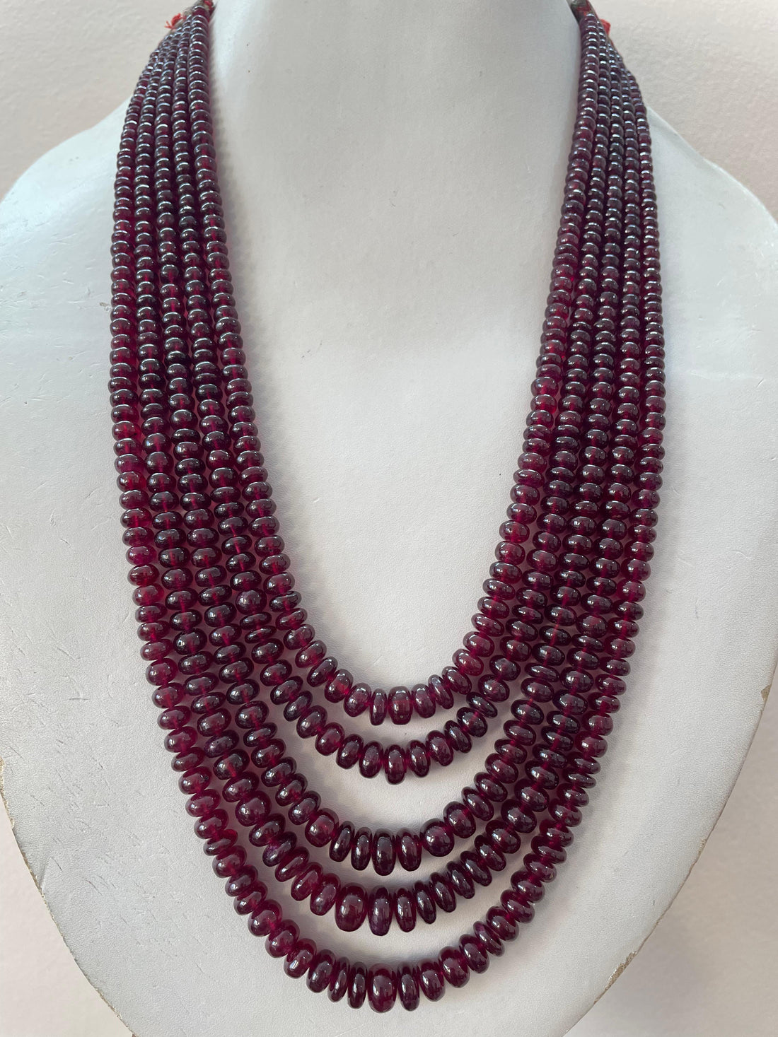 Natural Ruby Smooth Beads – 5-Strand Necklace