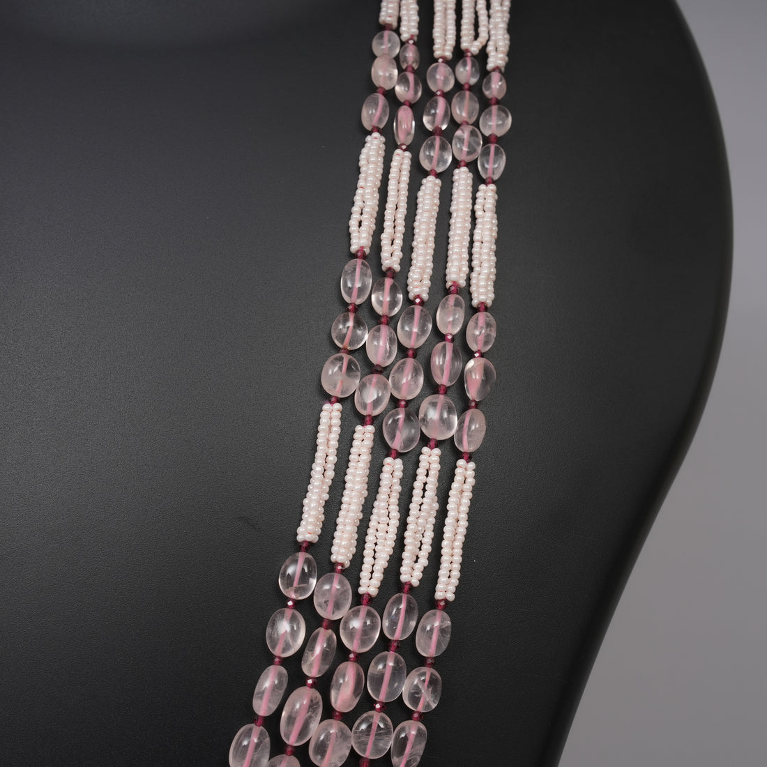 Natural Rose Quartz Smooth Ovals with Garnet Beads & Pearls