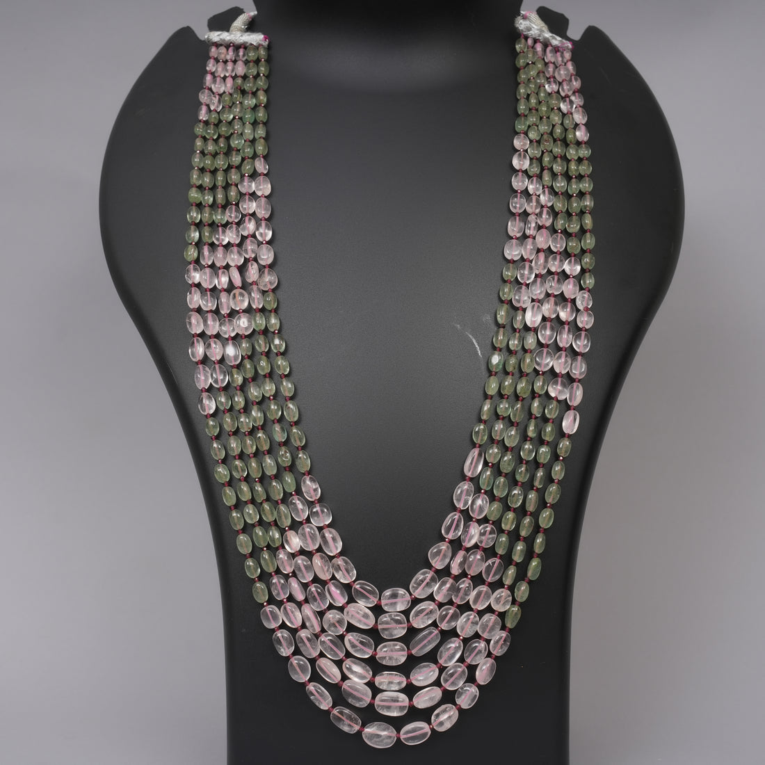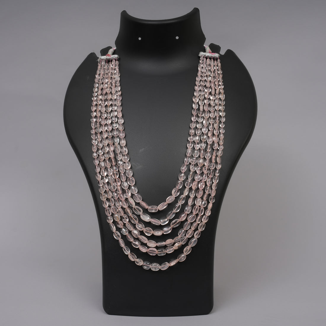 A graceful blend of soft elegance and timeless charm, this 5-strand necklace features Natural Rose...