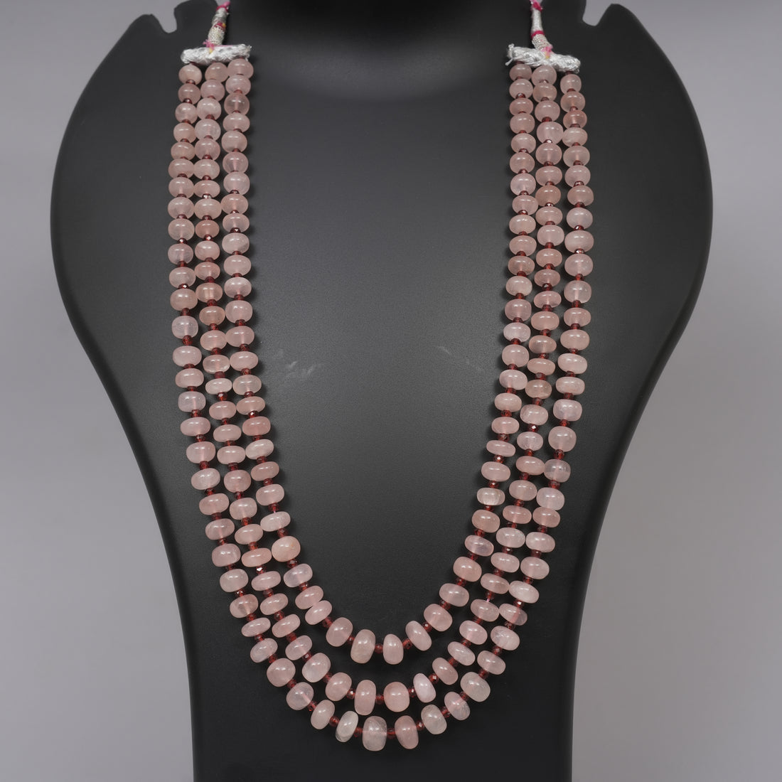 Natural Rose Quartz Smooth Beads with Garnet Beads