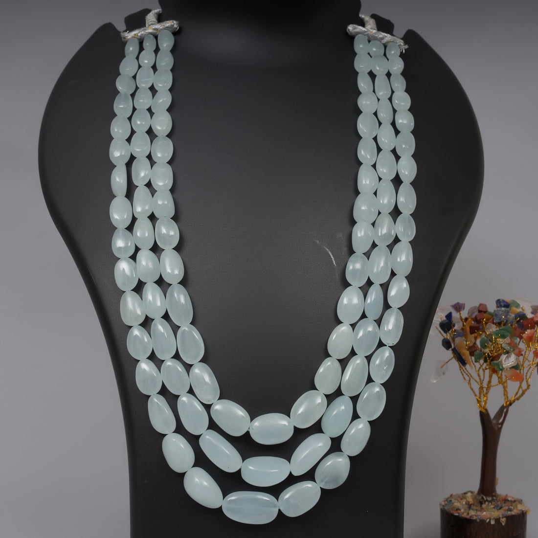 Make a bold and serene statement with this stunning Natural Aquamarine necklace, featuring large smooth...
