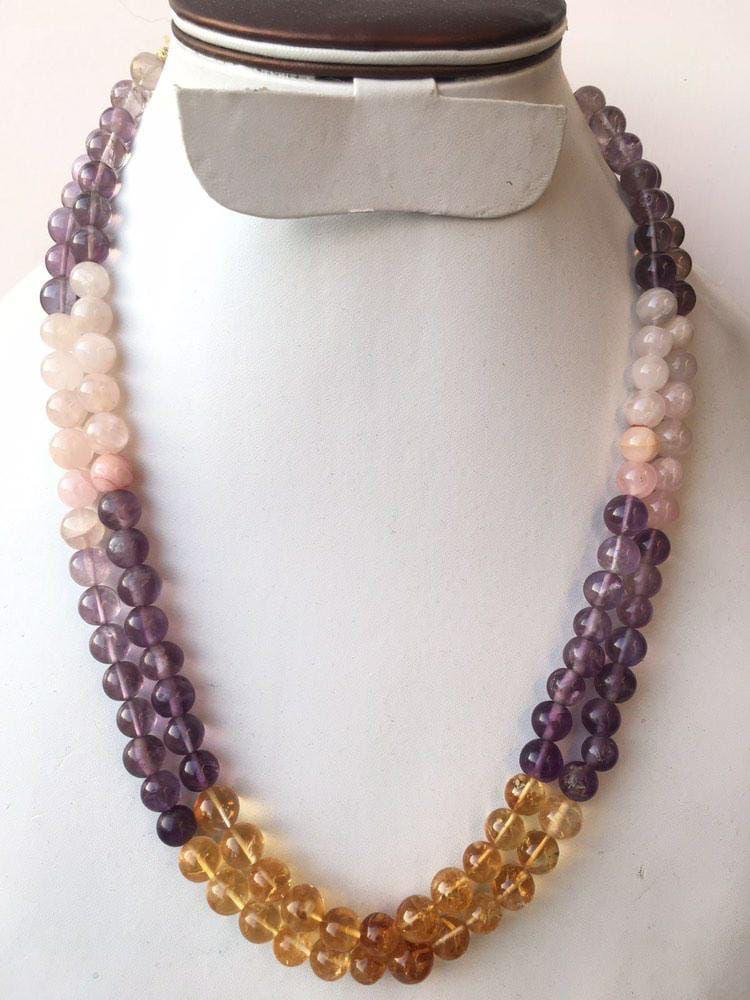 Natural Amethyst Smooth Drops with Green Onyx Beads Necklace Jewelry Necklace of 3 strands Length...