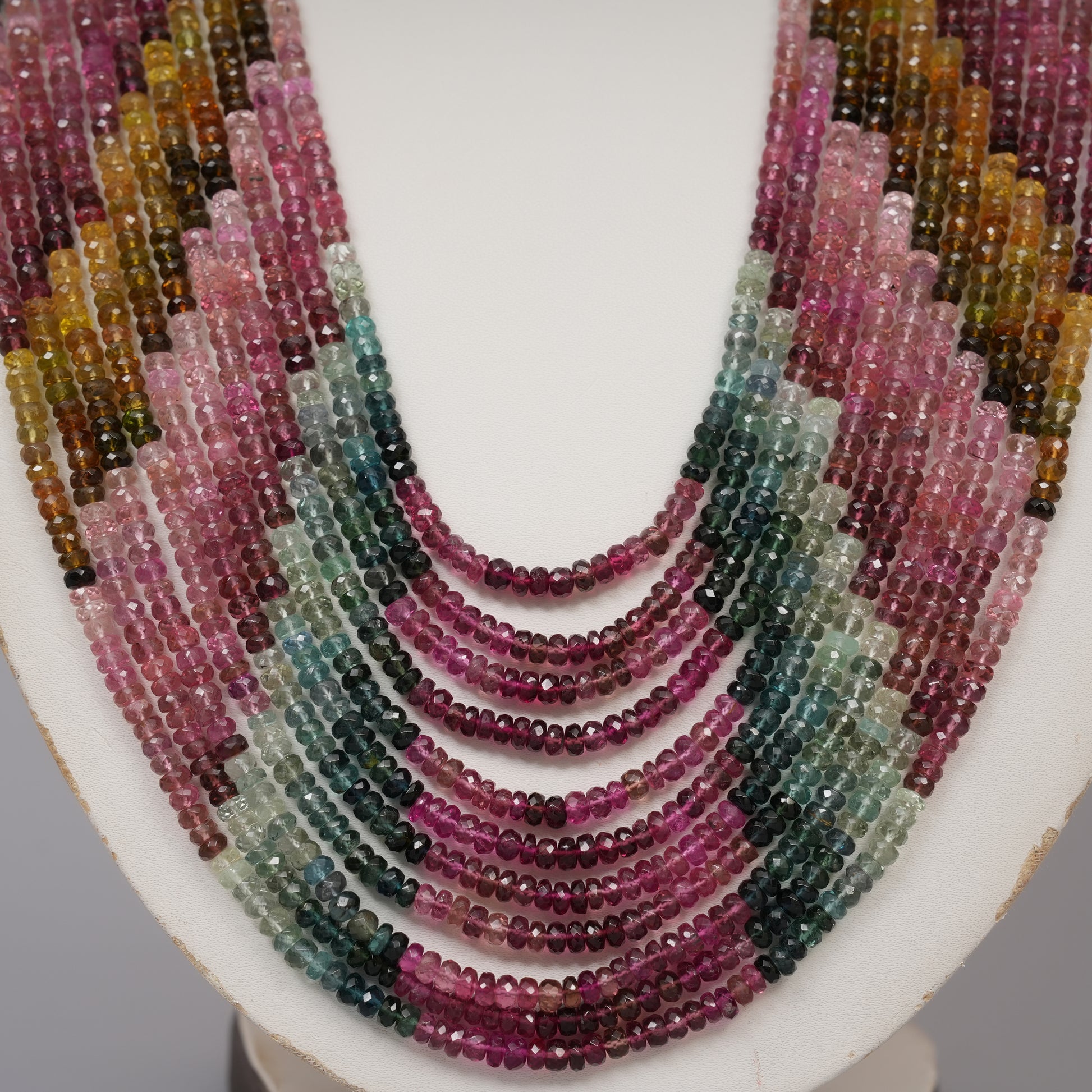 Add a burst of natural color to your collection with this dazzling necklace made of multi-color Tourmaline faceted beads. Expertly cut to sparkle with every movement, these beads come in rich shades of pink, green, yellow, and deep red—each representing the earth's natural beauty.