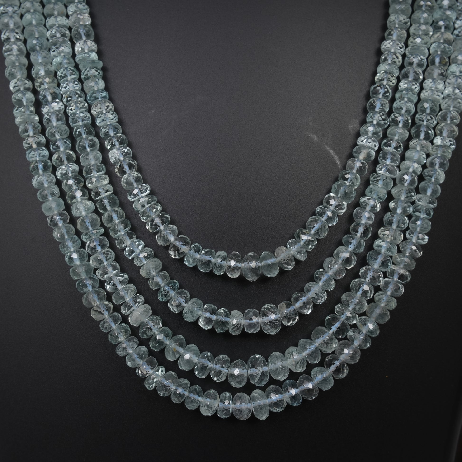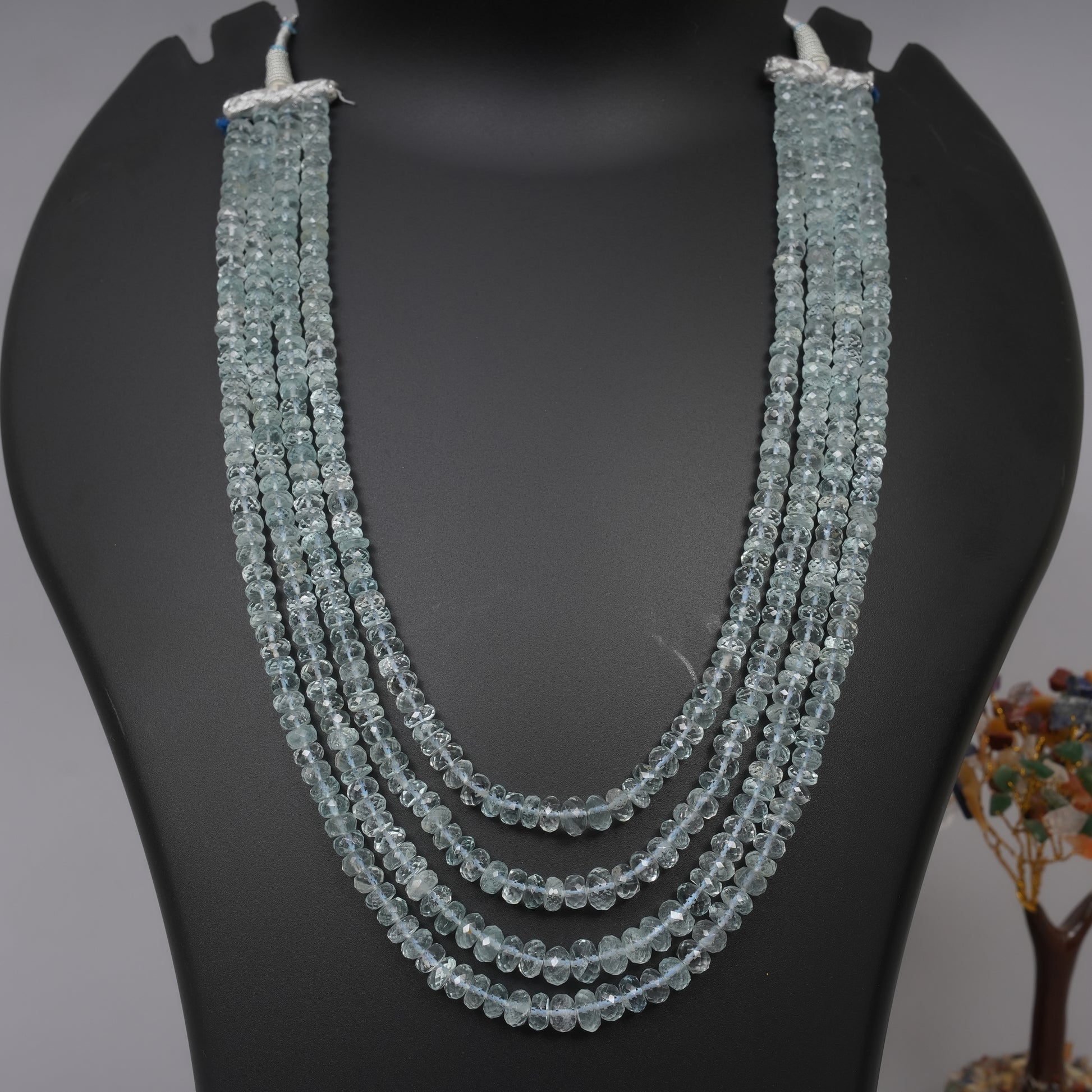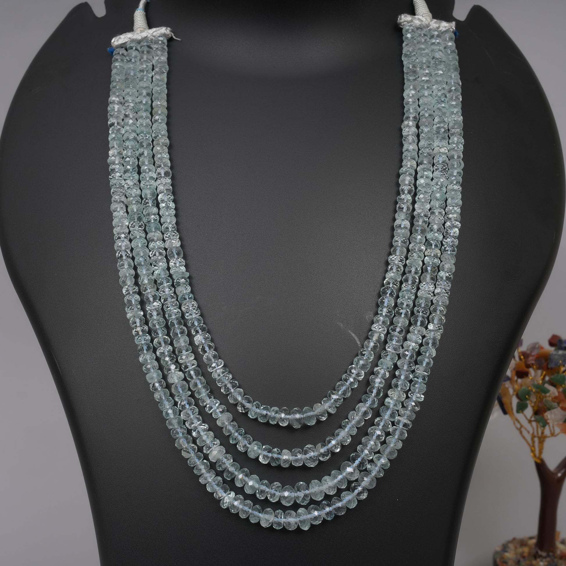 Elegant and refreshing, this Natural Aquamarine Faceted Beads Necklace radiates serene beauty and refined charm. Crafted with shimmering faceted beads sized 6–9 mm, this 4-strand necklace showcases the tranquil blue tones aquamarine is known for.