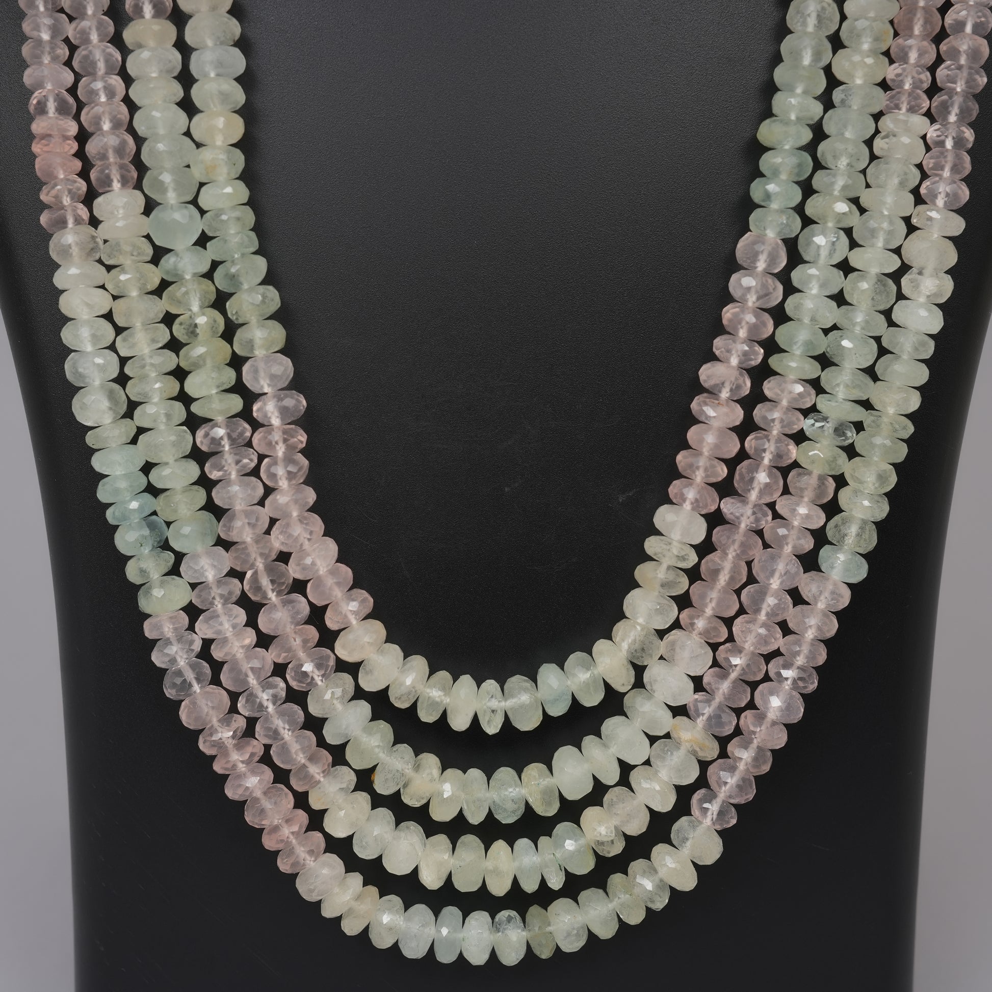 A soothing blend of elegance and gentle charm, this Natural Aquamarine & Rose Quartz Necklace features beautifully faceted beads that reflect light with every movement. Crafted with care, this 4-strand necklace combines calming blue tones of aquamarine with the soft blush of rose quartz.