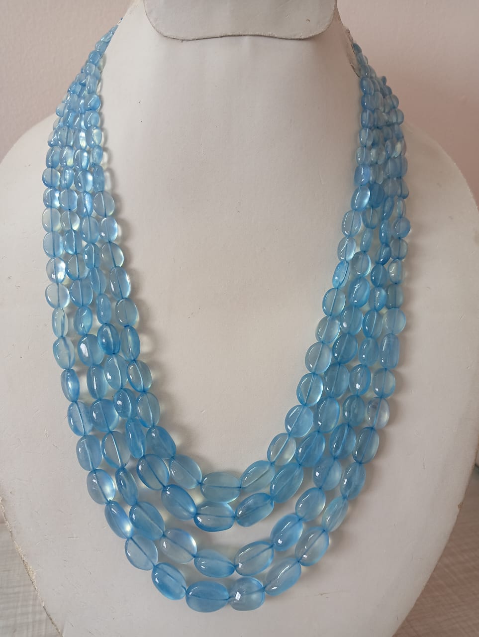 Natural Aquamarine Smooth Ovals – 4-Strand Necklace