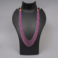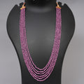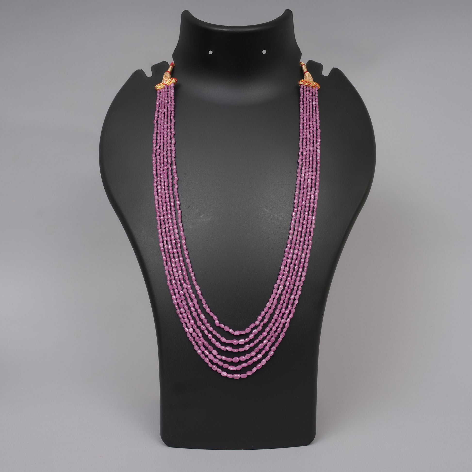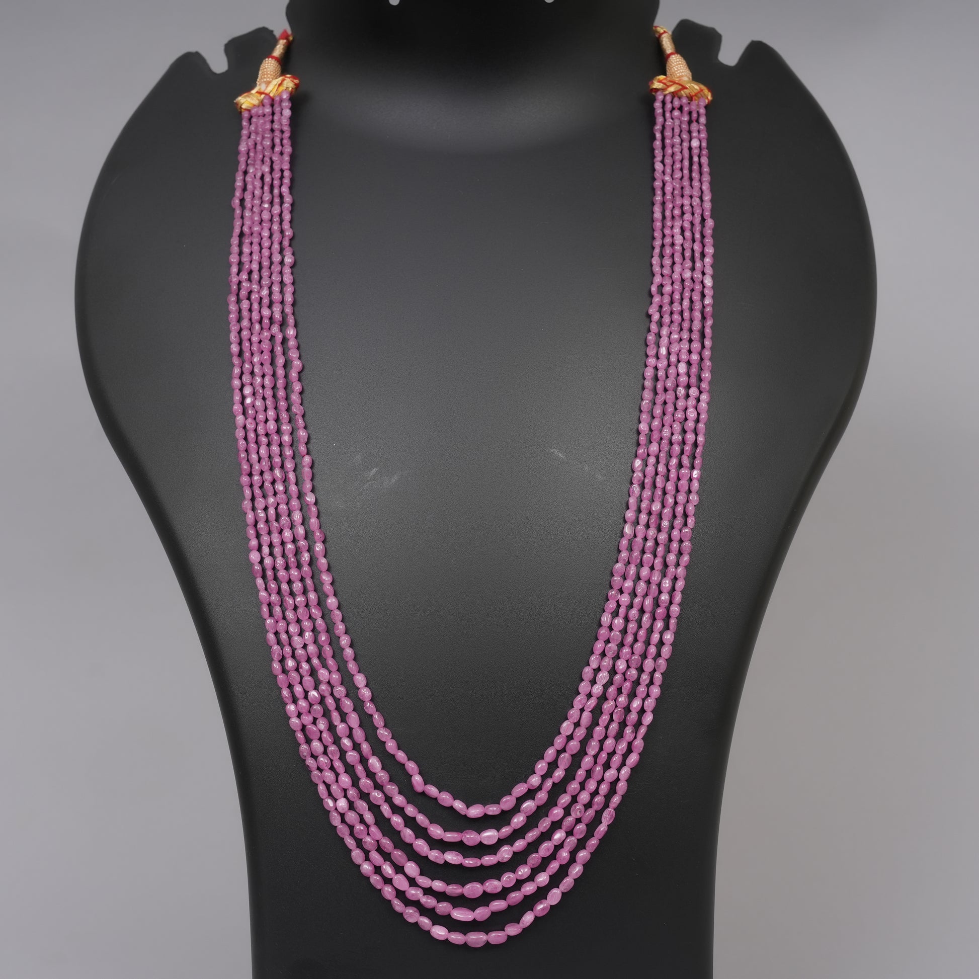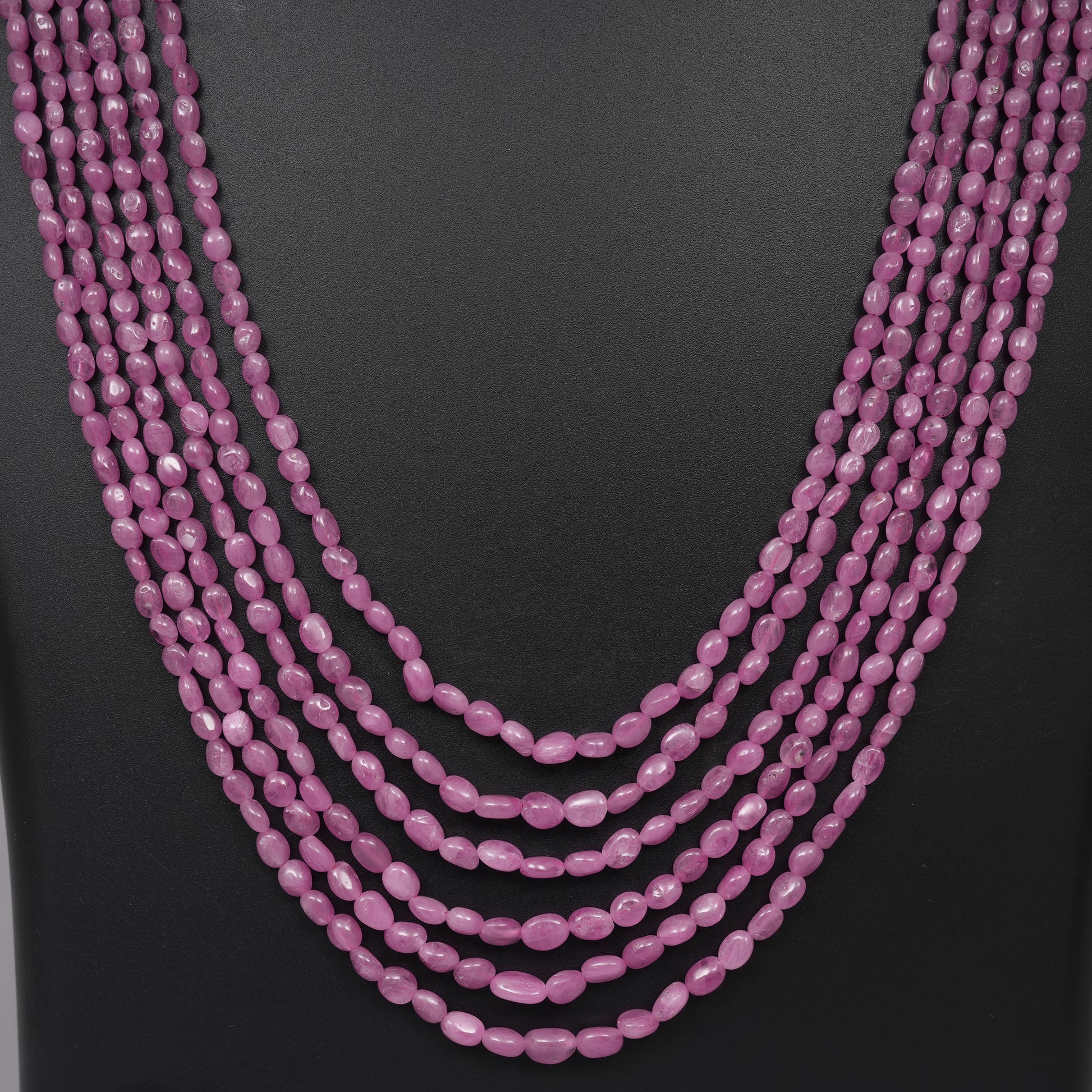 A symbol of elegance and luxury, this 6-strand necklace features exquisite Natural Burma Ruby smooth ovals in a delicate size range of 3x5 mm to 4x6 mm (approx.). Known for their deep pink-red glow and superior quality, these rubies are gracefully arranged into a 23-inch layered necklace that radiates timeless charm.