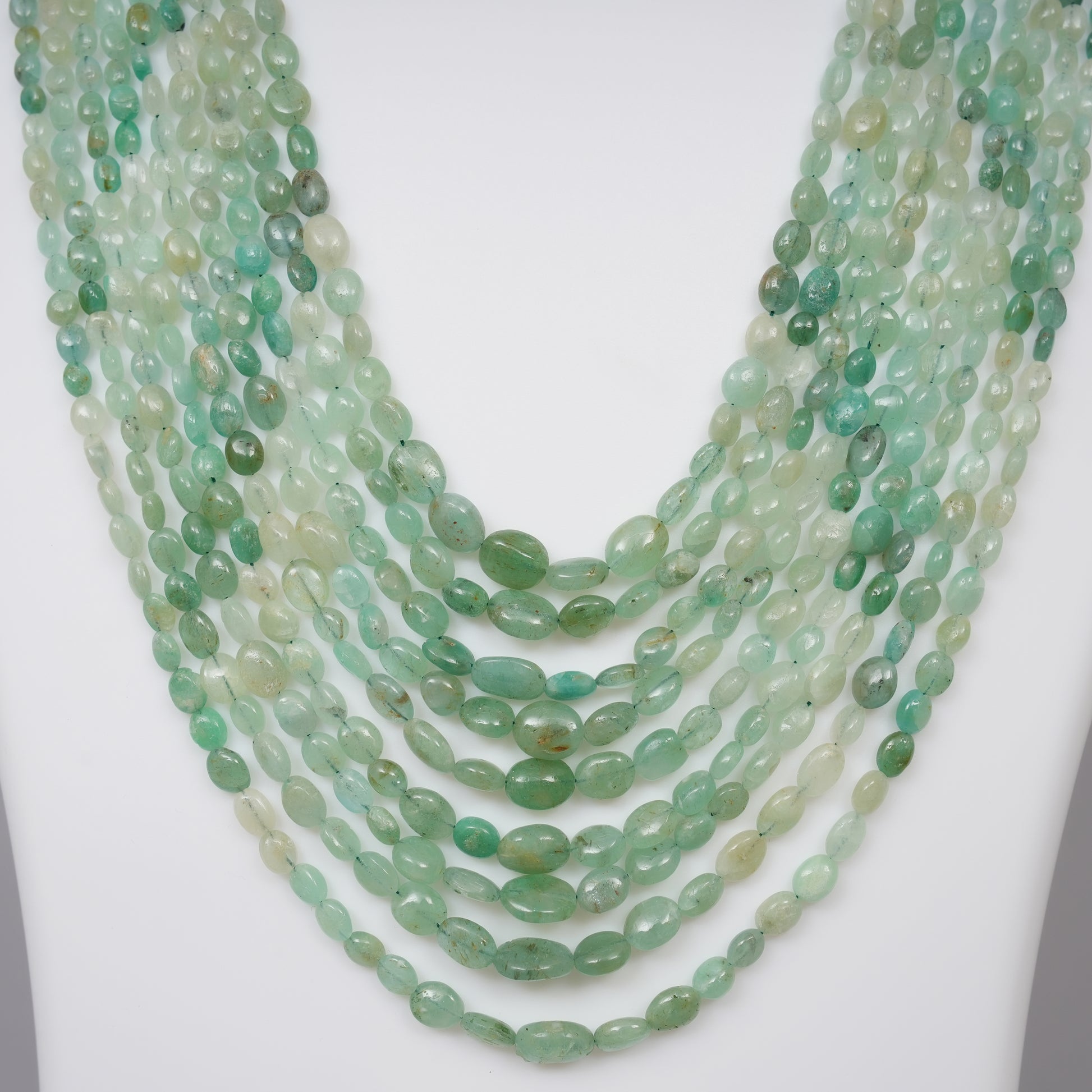 Elevate your collection with the rich, vibrant allure of Natural Colombian Emeralds. Expertly cut into smooth oval beads, these emeralds radiate elegance with every strand. Their luminous green tones bring a sense of luxury and timeless beauty.