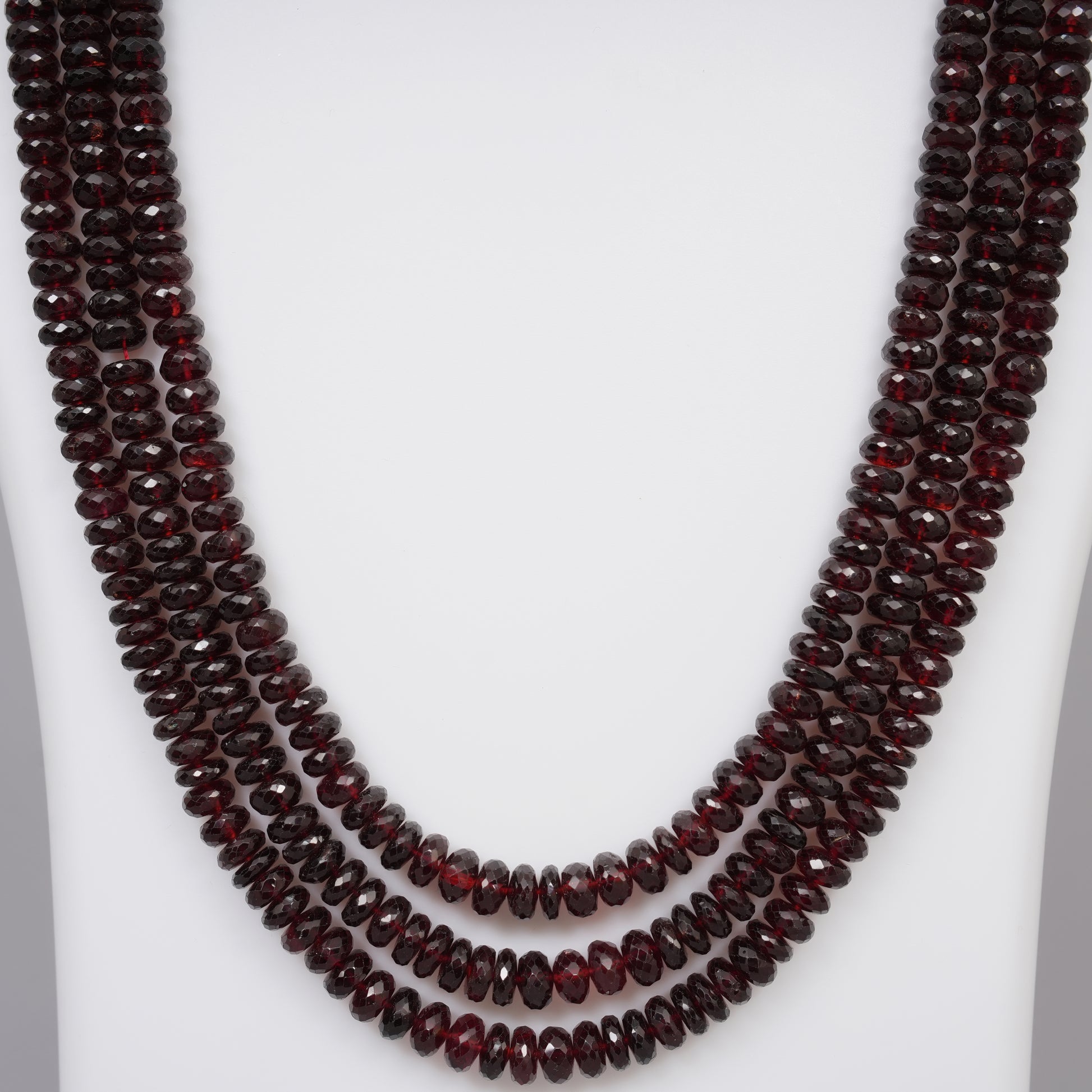 Bold, timeless, and full of rich color — this Natural Garnet Faceted Beads Necklace is a striking piece of handcrafted jewelry. Made with deep red faceted beads measuring 6–7 mm, the necklace features 3 strands of radiant garnets that exude elegance and passion.