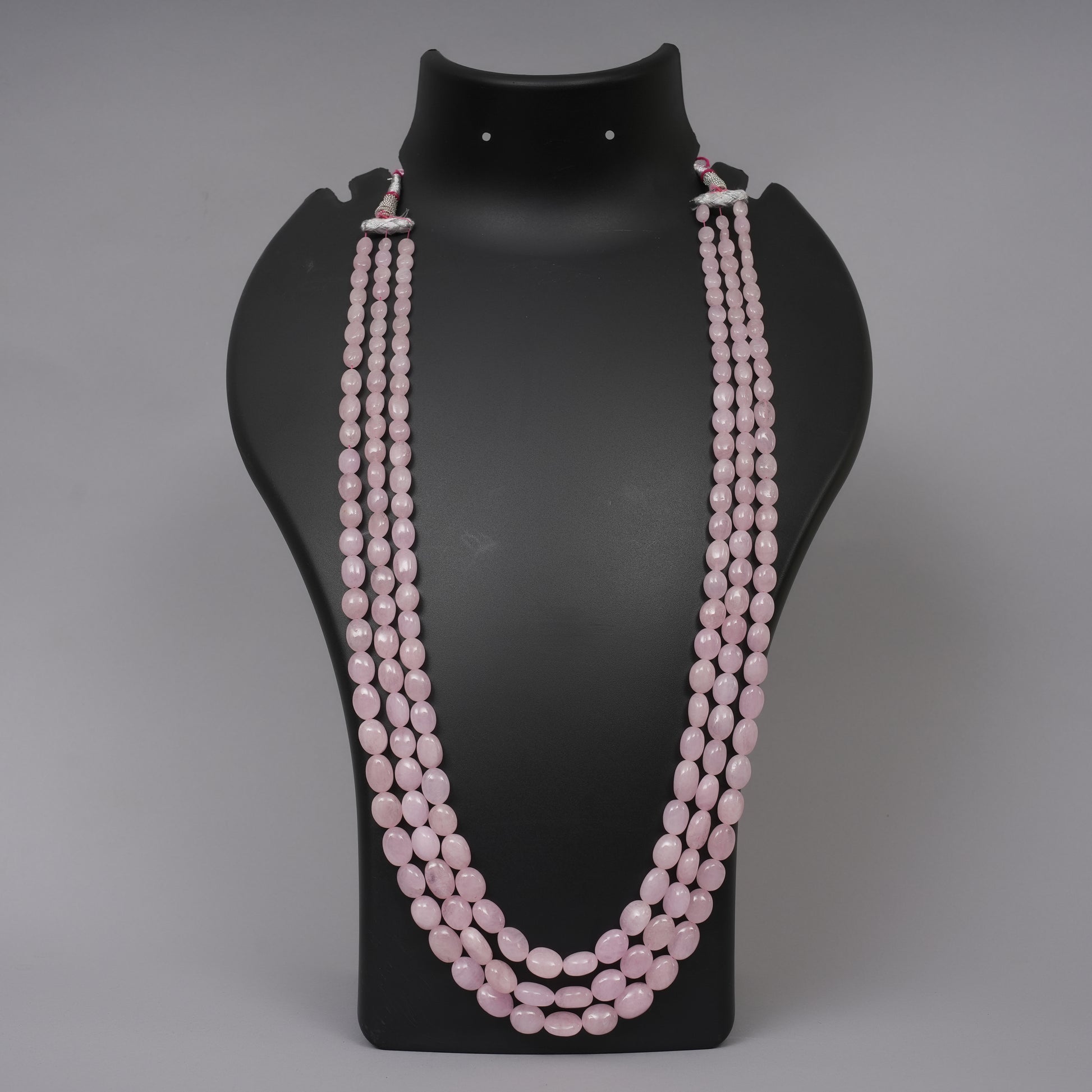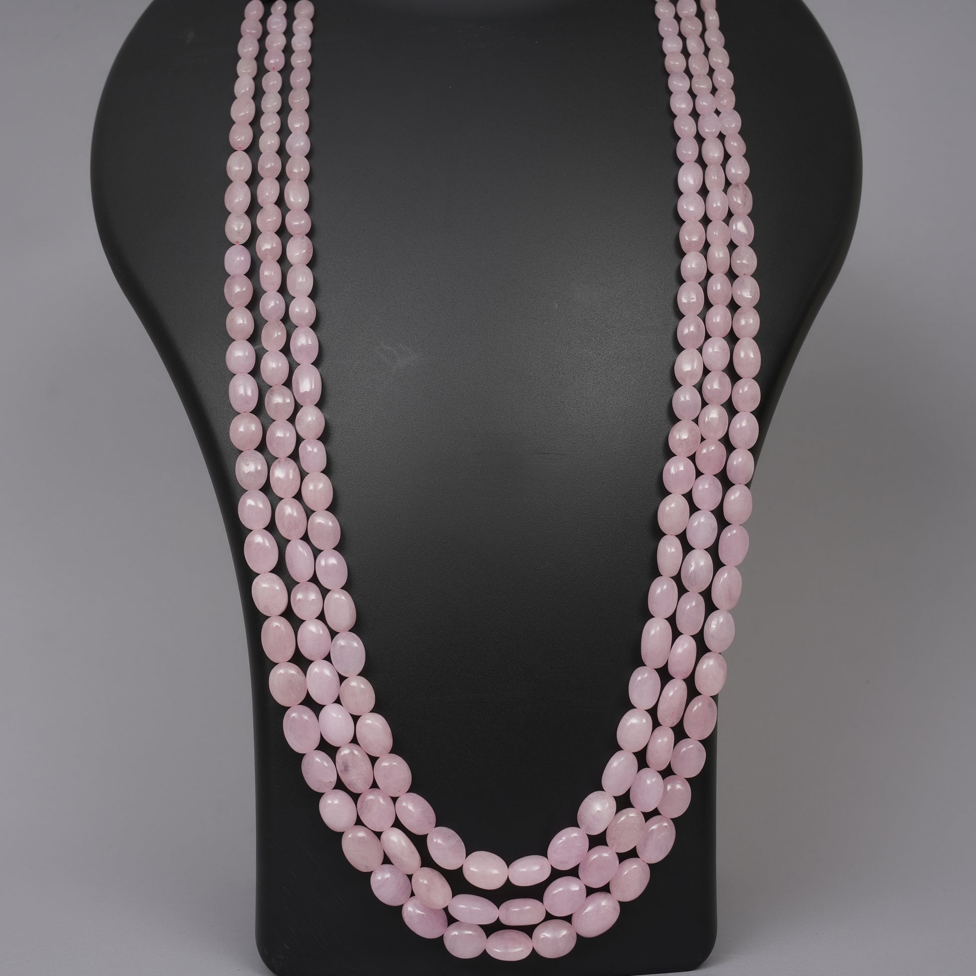 Add a soft, feminine touch to your collection with this stunning Natural Morganite Necklace. Featuring smooth oval beads in gentle peach-pink tones, this 3-strand necklace radiates sophistication and calming energy.