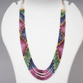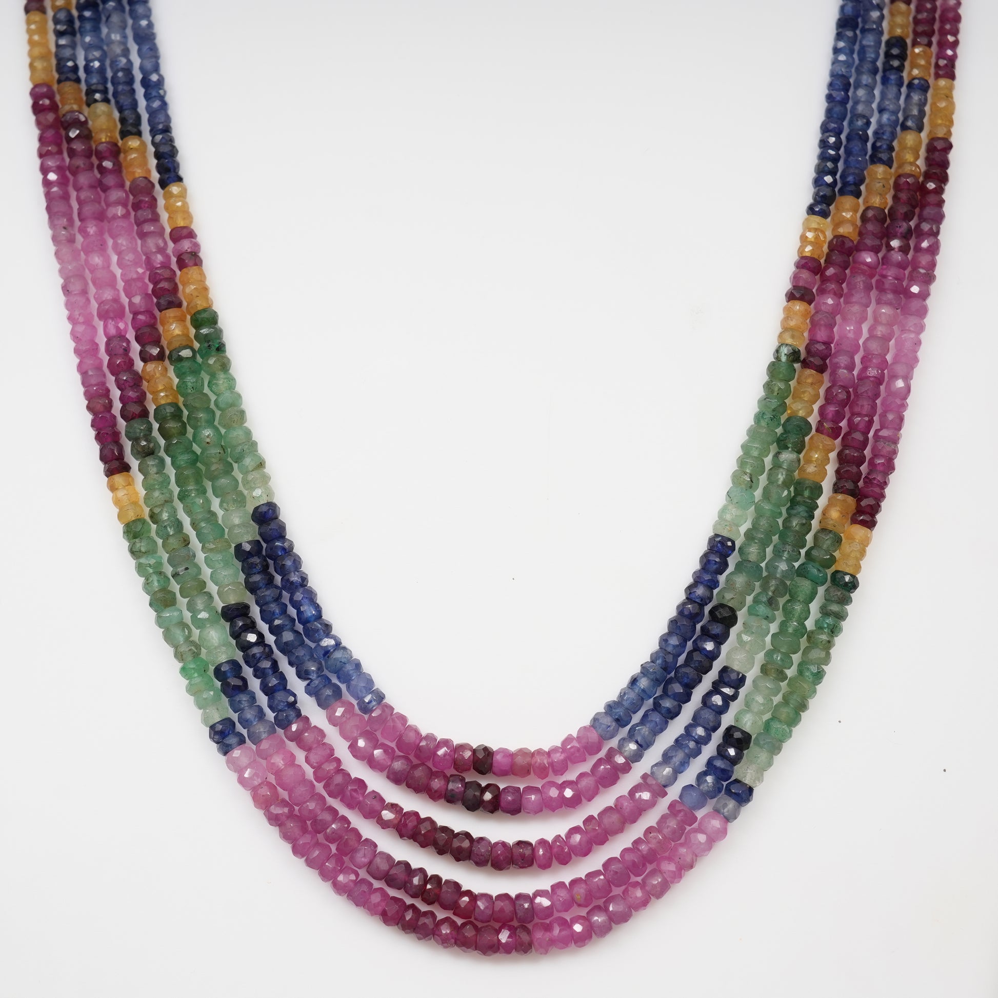 A dazzling celebration of color and sparkle, this 5-strand necklace features finely cut Natural Multi Precious faceted beads, radiating brilliance in every shade. With delicate bead sizes ranging from 3–4 mm (approx.), this 18-inch necklace offers a lightweight yet luxurious look, perfect for layering or solo wear.