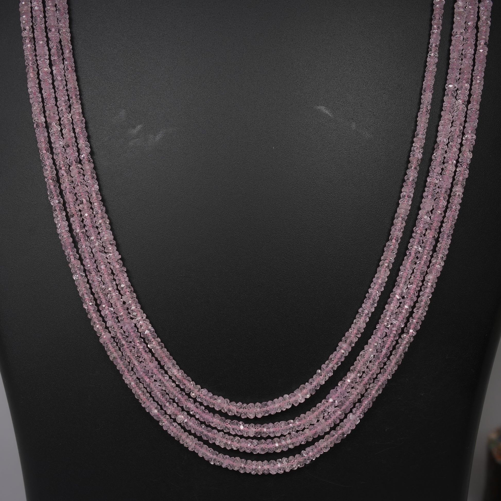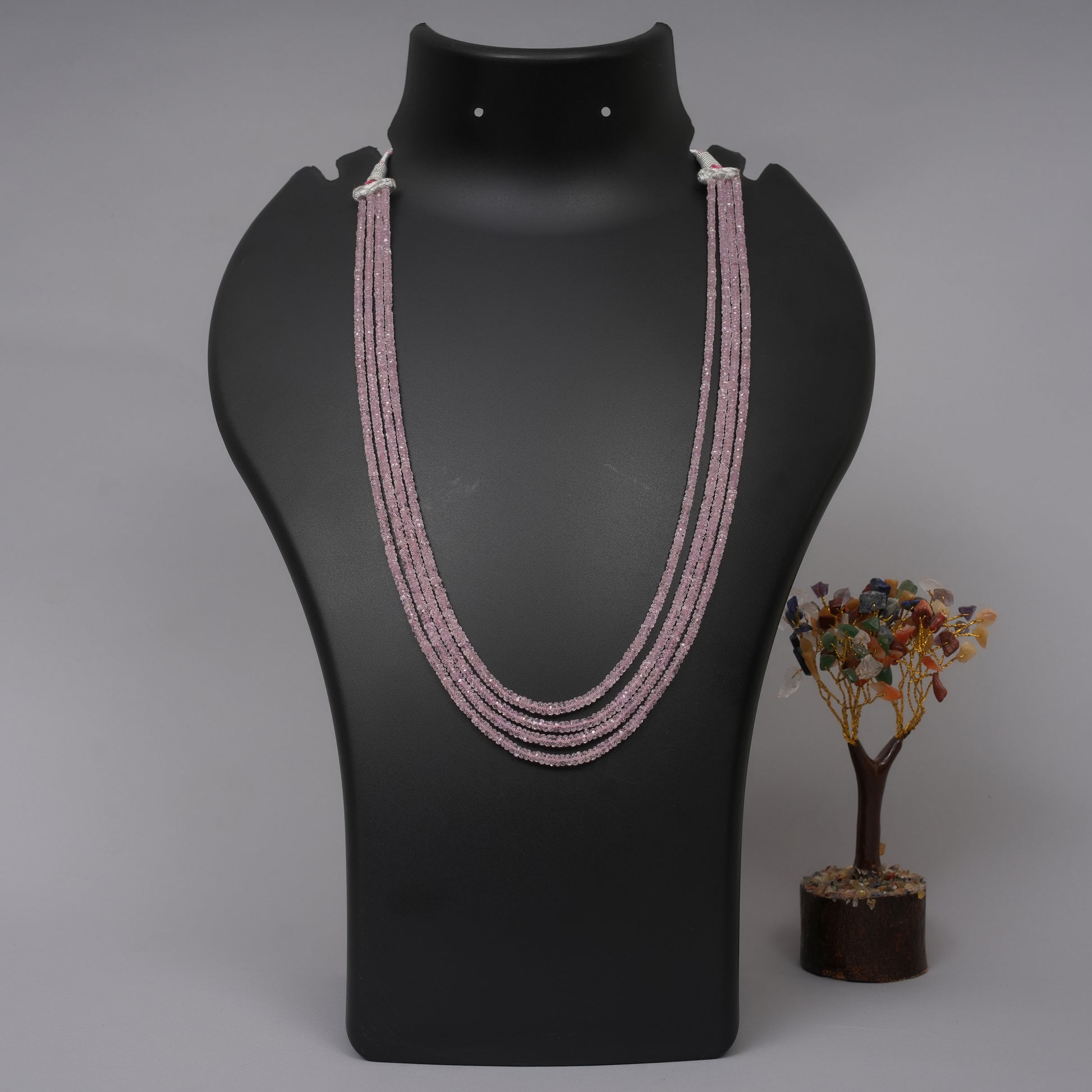 Elevate your elegance with the soft, royal charm of Natural Pink Sapphire. This 4-strand necklace features dazzling faceted beads, each hand-cut to enhance the gem's natural brilliance. A timeless expression of grace, luxury, and femininity.
