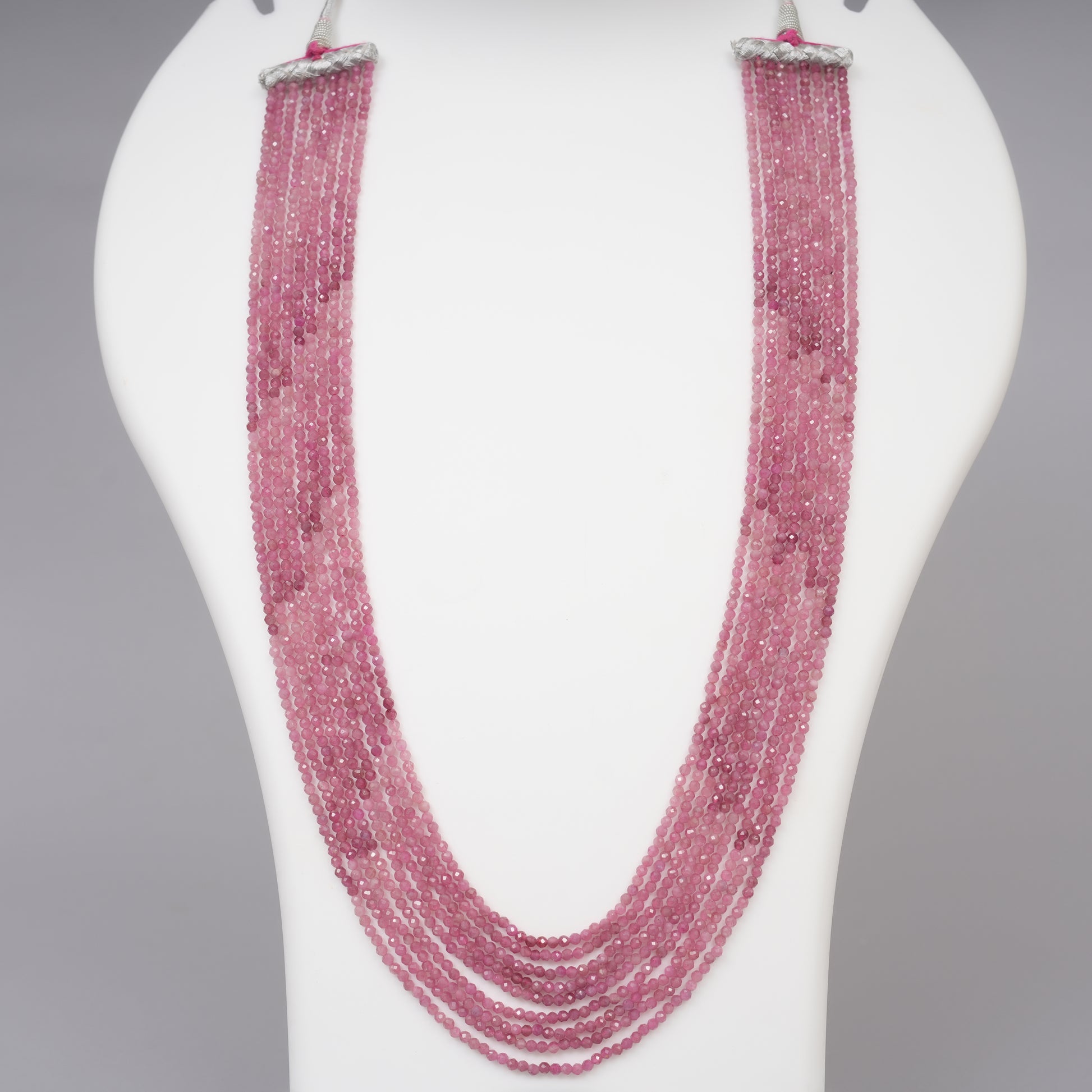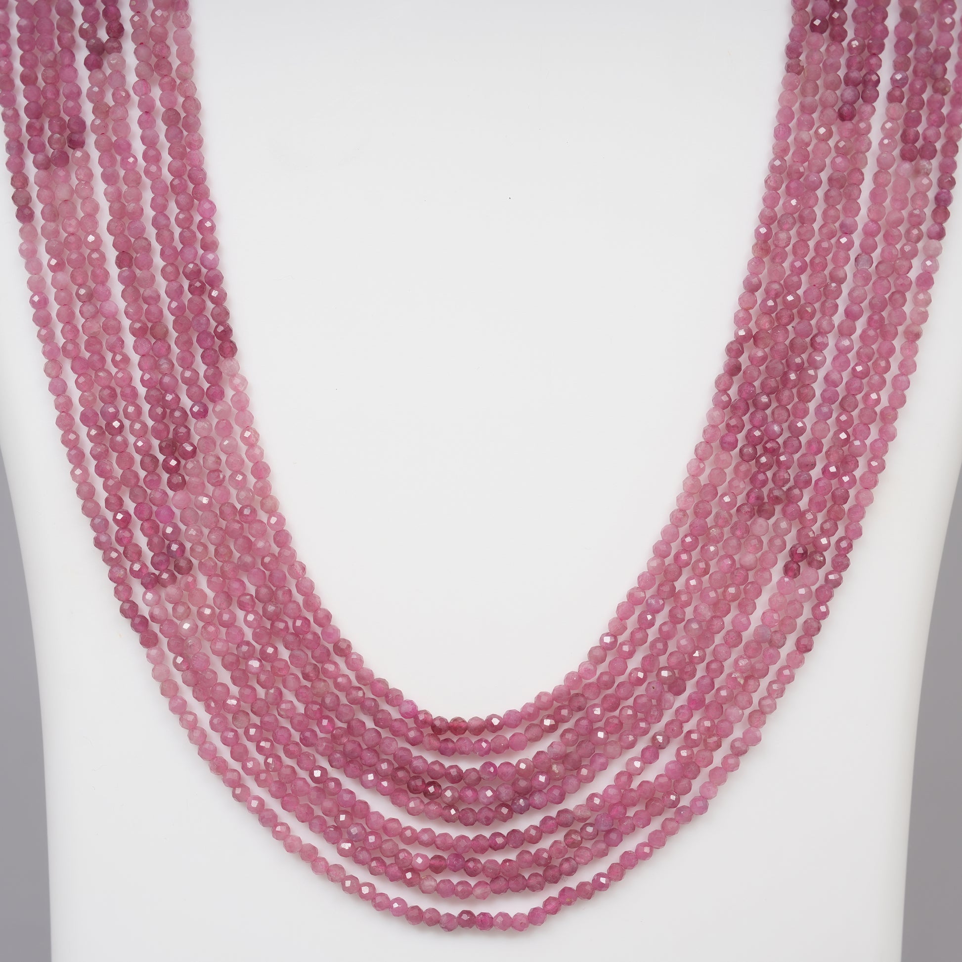Delicate and dazzling, this Natural Pink Tourmaline Faceted Beads Necklace is a beautiful expression of femininity and grace. Featuring finely cut 3 mm faceted beads, the 9-strand design sparkles with soft pink tones that catch the light with every movement.