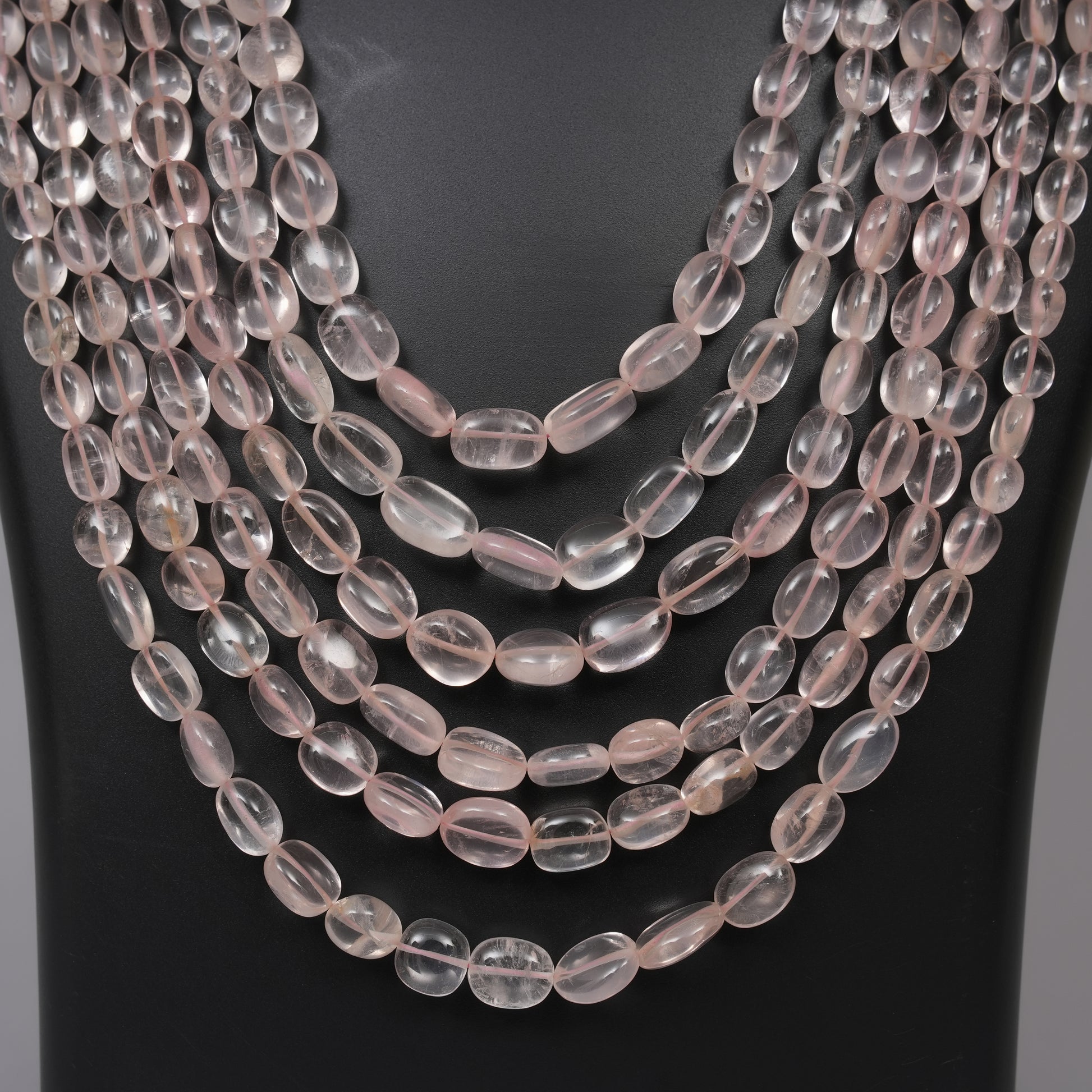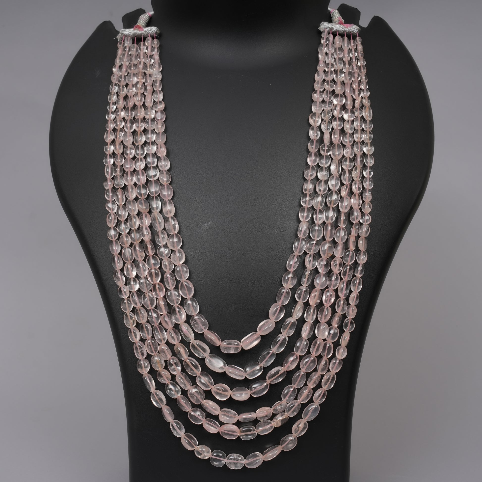 Celebrate love and elegance with this charming Natural Rose Quartz necklace, crafted with smooth oval beads that radiate a gentle pink glow. Known as the stone of compassion and calm, this piece blends softness with style, perfect for day or evening wear.