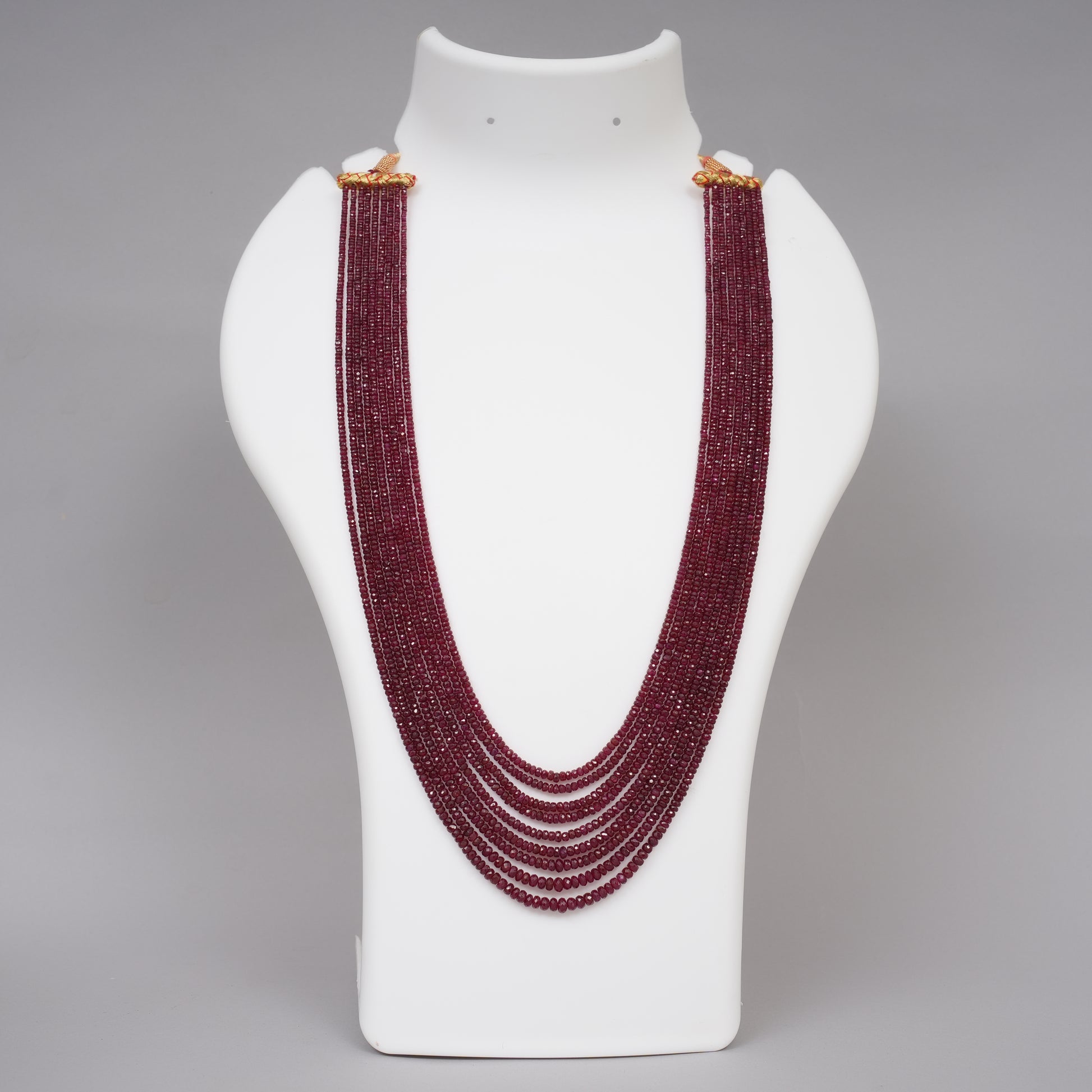 Exude timeless elegance and passion with this Natural Ruby Faceted Beads Necklace, featuring finely cut beads that shimmer with deep, rich red tones. With bead sizes ranging from 2.5 mm to 5 mm, this 9-strand necklace is a bold yet graceful statement piece.