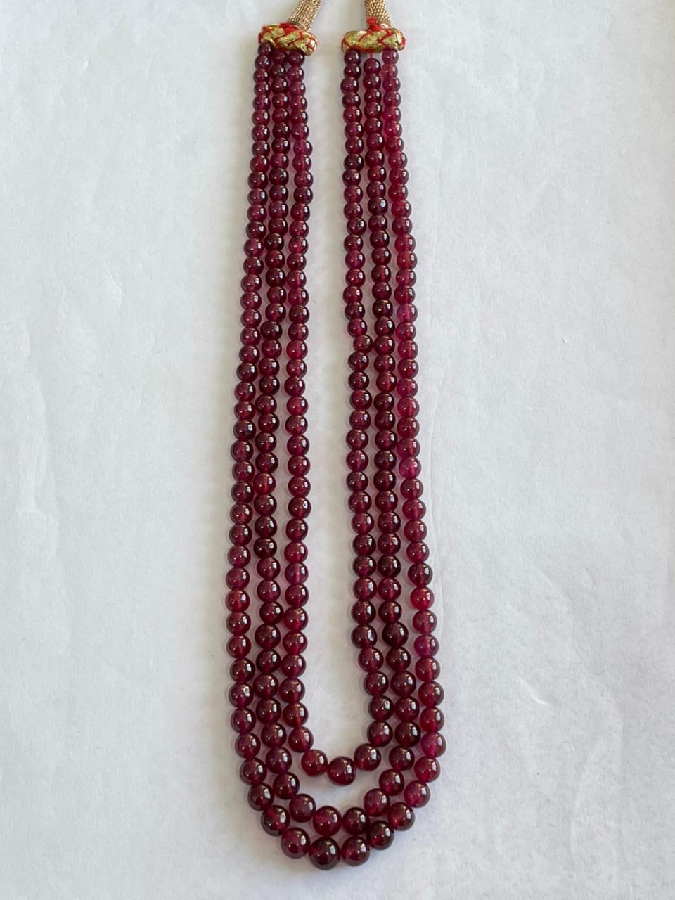 Natural Ruby Smooth Round Beads – 3-Strand Necklace