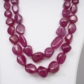 Rich in color and grandeur, this Natural Ruby Smooth Tumbles Necklace features large, polished beads that radiate timeless beauty and power. With bead sizes ranging from 12x15 mm to 18x20 mm, this 2-strand necklace is a statement piece that embodies elegance and strength.