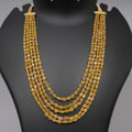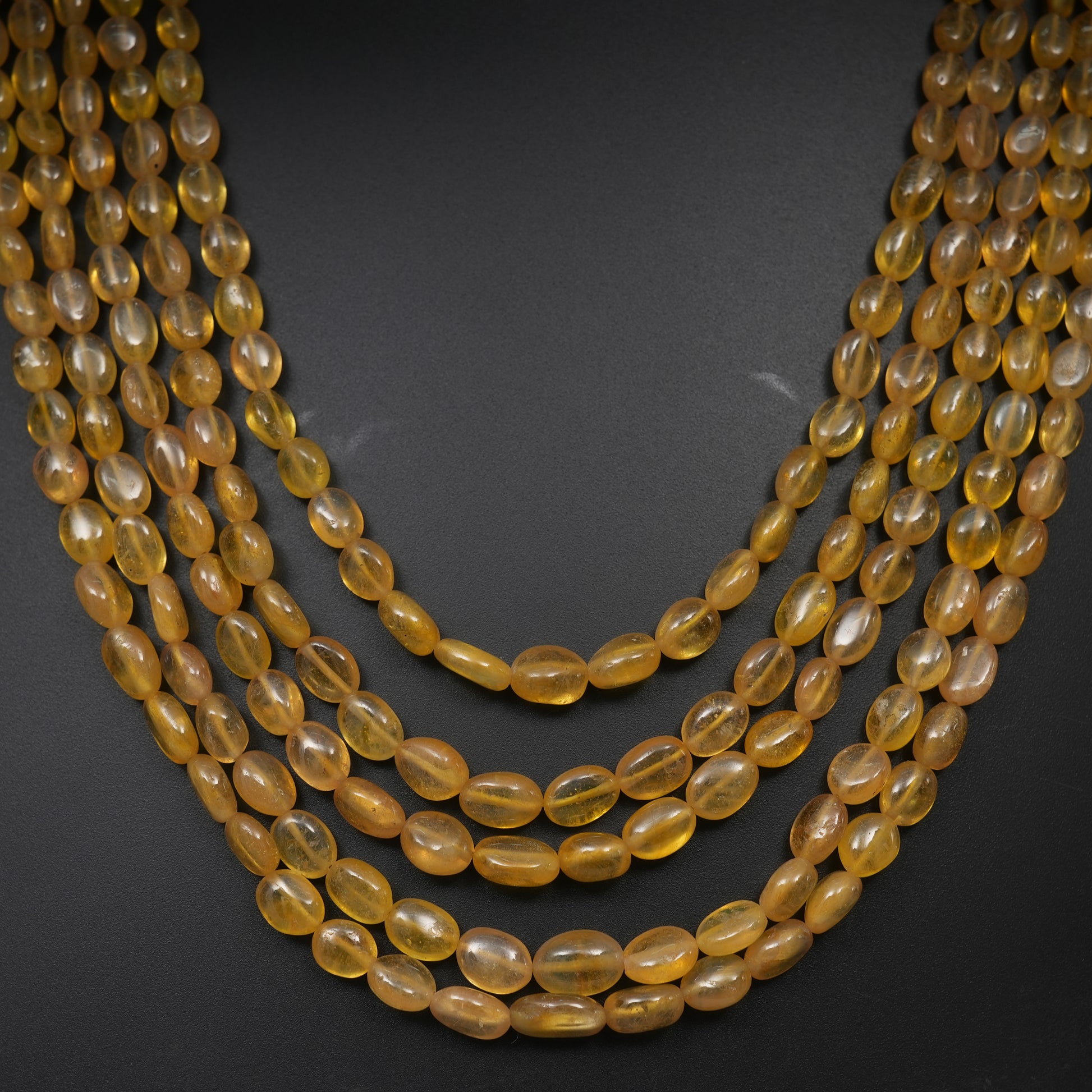 Radiating warmth and positivity, this elegant 5-strand necklace features luminous Natural Yellow Sapphire smooth ovals, carefully selected for their rich golden hue and clarity. Sized between 5x7 mm to 8x10 mm (approx.), the beads are strung into a graceful 18-inch necklace—perfect for adding a touch of luxury to any look.