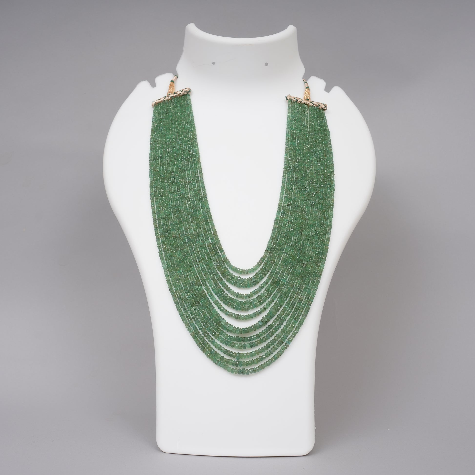 A luxurious display of brilliance and heritage, this 14-strand necklace features Natural Zambian Emerald faceted beads, expertly cut to enhance their rich green glow. With bead sizes ranging from 3–5 mm (approx.), this 22-inch layered design offers a refined sparkle and timeless elegance across every strand.